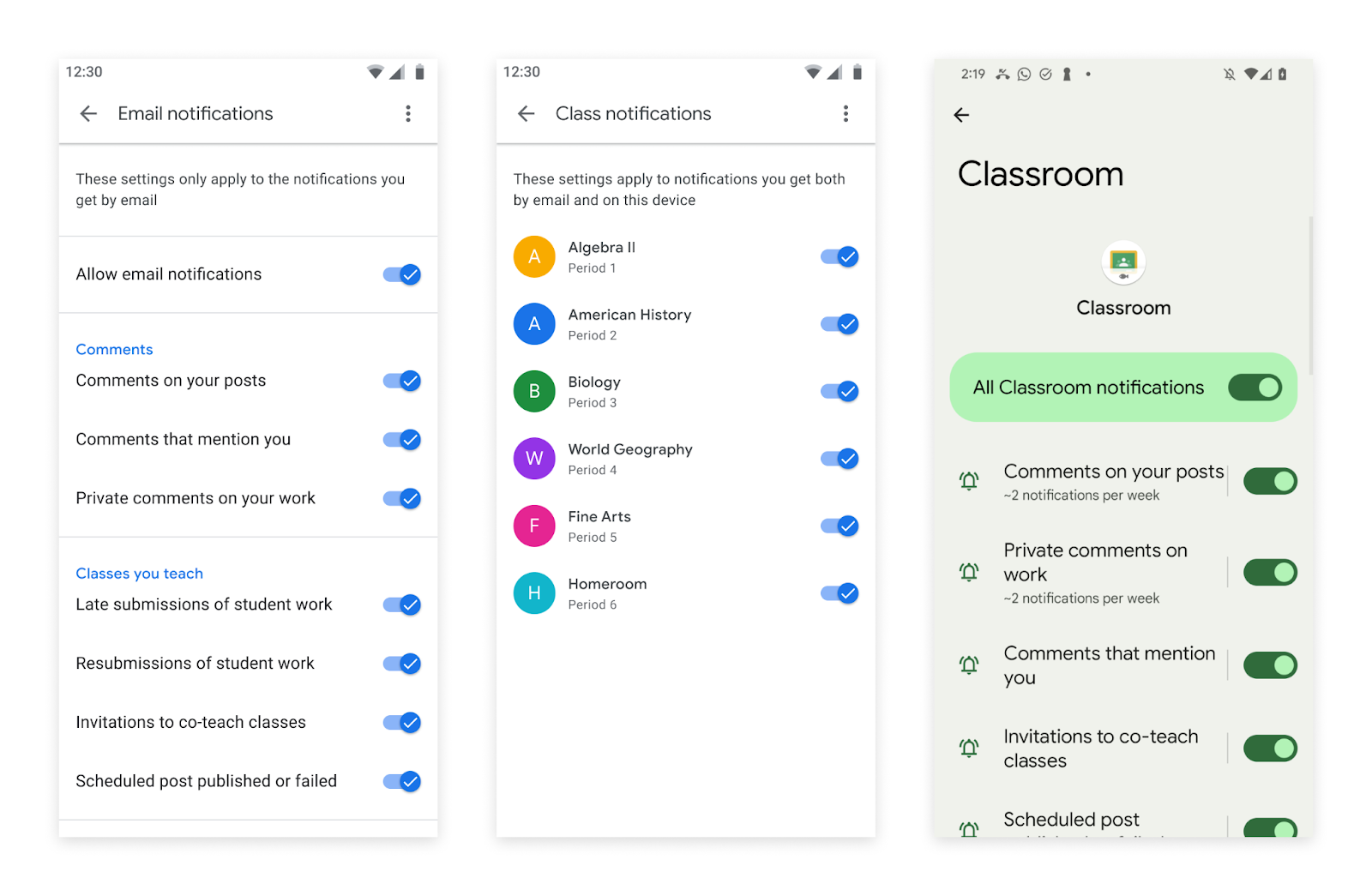 In addition to setting your preference for Classroom push notifications, you can now tailor your email notifications from Android or iOS mobile devices. | Learn more.