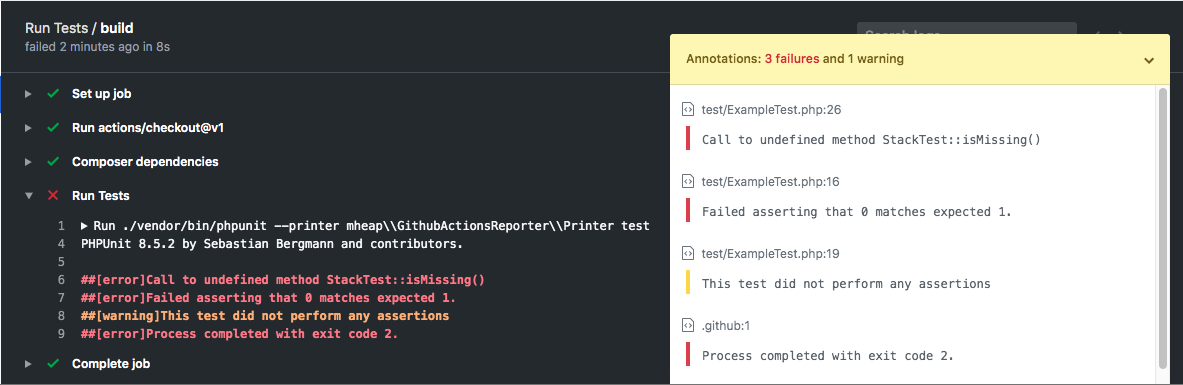 Images from https://github.com/mheap/phpunit-github-actions-printer