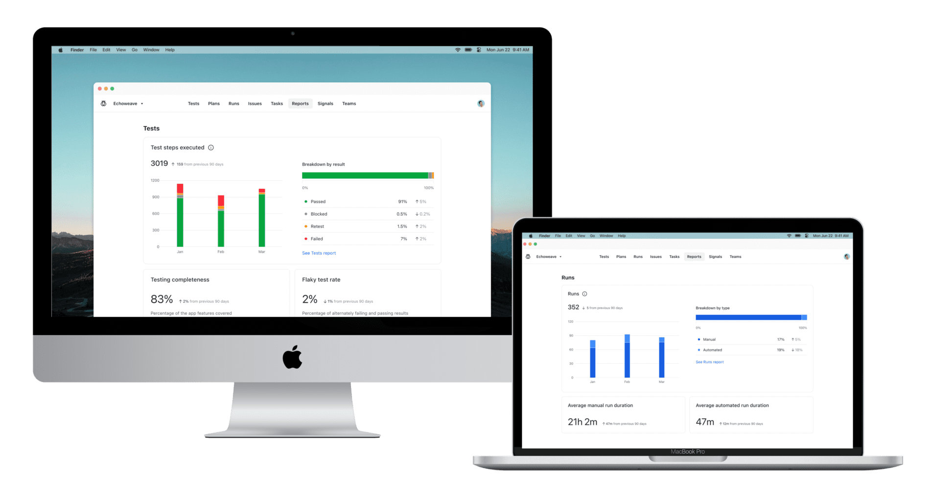 Transparent tracking: Gain full visibility into your testing with data reporting on every detail, from coverage to speed, utilization, and more.