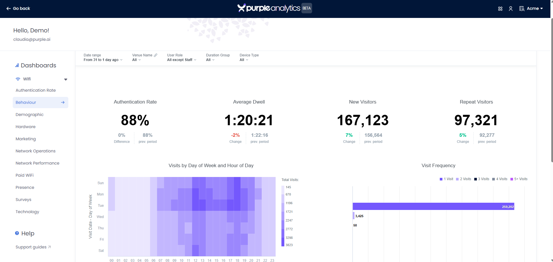 Wir nutzen Purple seit drei Jahren als unseren Anbieter für WiFi-Captive-Portale, und ich bin wirklich beeindruckt von der Flexibilität der Plattform und wie einfach sie zu verwalten ist.