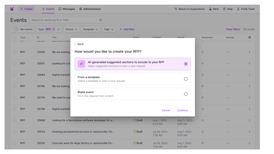 Fairmarkit eleva cada escenario de abastecimiento, desde el gasto de cola de bajo valor hasta los RFX estratégicos de múltiples etapas, con nuestros nuevos agentes de IA entrenados en adquisiciones, Adaptive RFX y análisis dinámicos añadidos a nuestra plataforma diseñada para un abastecimiento rápido y escalable. Maneja la complejidad sin esfuerzo, escala sin aumentar el personal y convierte los procesos fragmentados de RFx en flujos de trabajo repetibles y robustos que aportan claridad y eficiencia al abastecimiento.