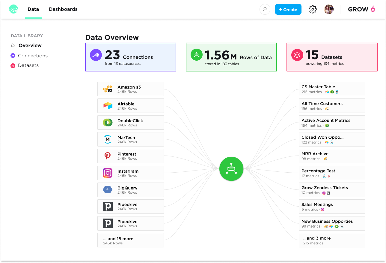 Grow.com a facilité pour notre équipe l'extraction de données à partir de différents outils et leur visualisation en un seul endroit sans configuration lourde. Nous l'utilisons principalement pour connecter des sources comme Google Sheets et des plateformes de marketing et les transformer en tableaux de bord simples. Le créateur de visuels est simple, donc les membres de l'équipe non techniques peuvent mettre à jour les graphiques sans demander de l'aide à l'ingénierie. Les actualisations programmées et les tableaux de bord partageables ont permis de gagner du temps lors des rapports hebdomadaires. Avis collecté par et hébergé sur G2.com.
